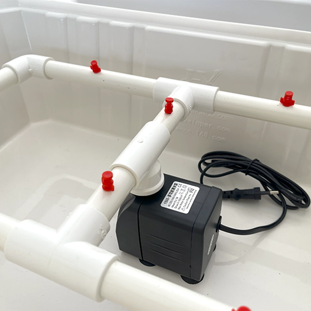 Conforme as mudas vão sendo hidratadas, o reservatório de água do Aero Clonador vai sendo esvaziado. Deixar o nível da água muito baixo pode estressar as mudas e fazer com que demorem mais para começar a enraizar. Certifique-se de reabastecer a cada 1-2 dias, conforme necessidade.