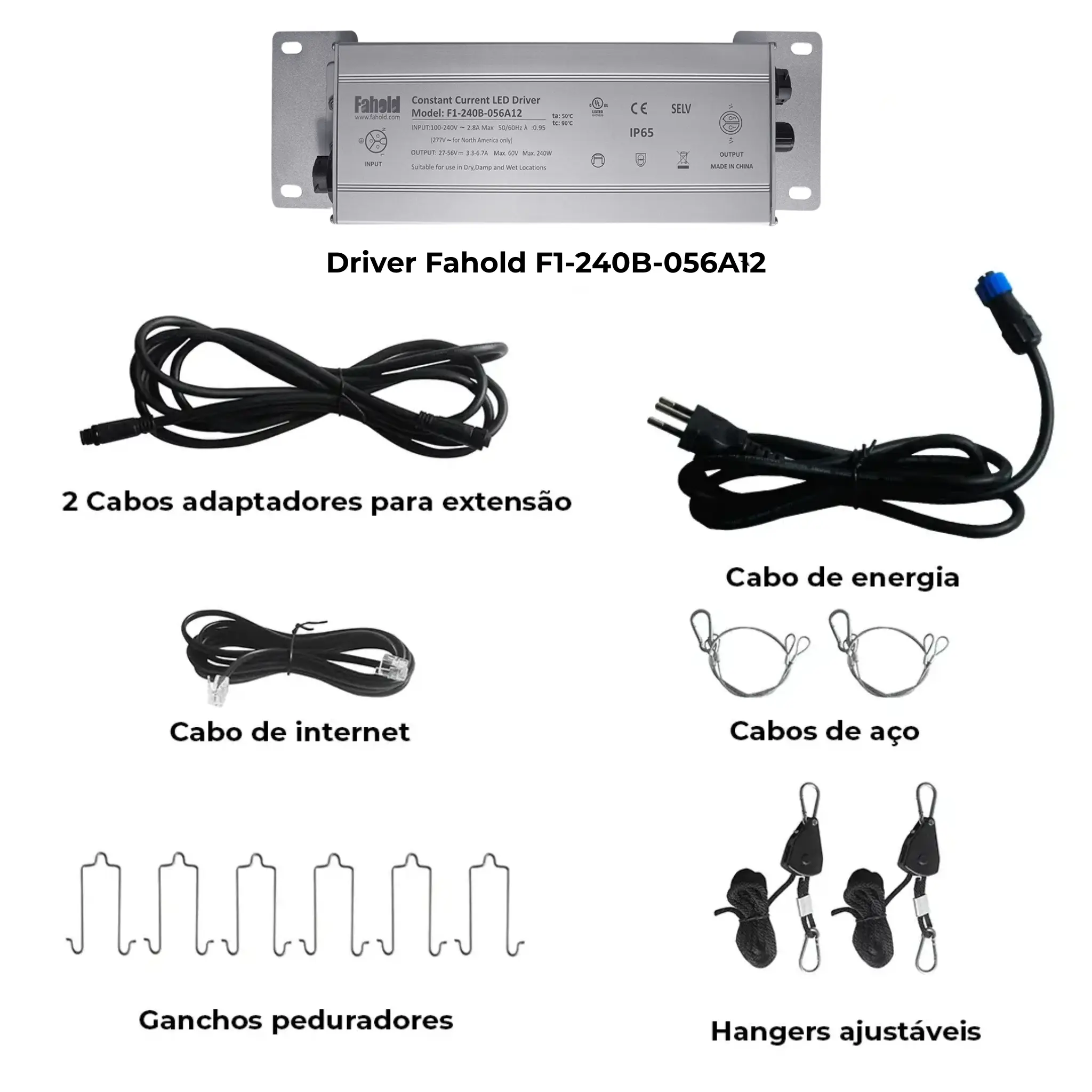 • Distância do driver ao plug (cabo): 1,8 m;